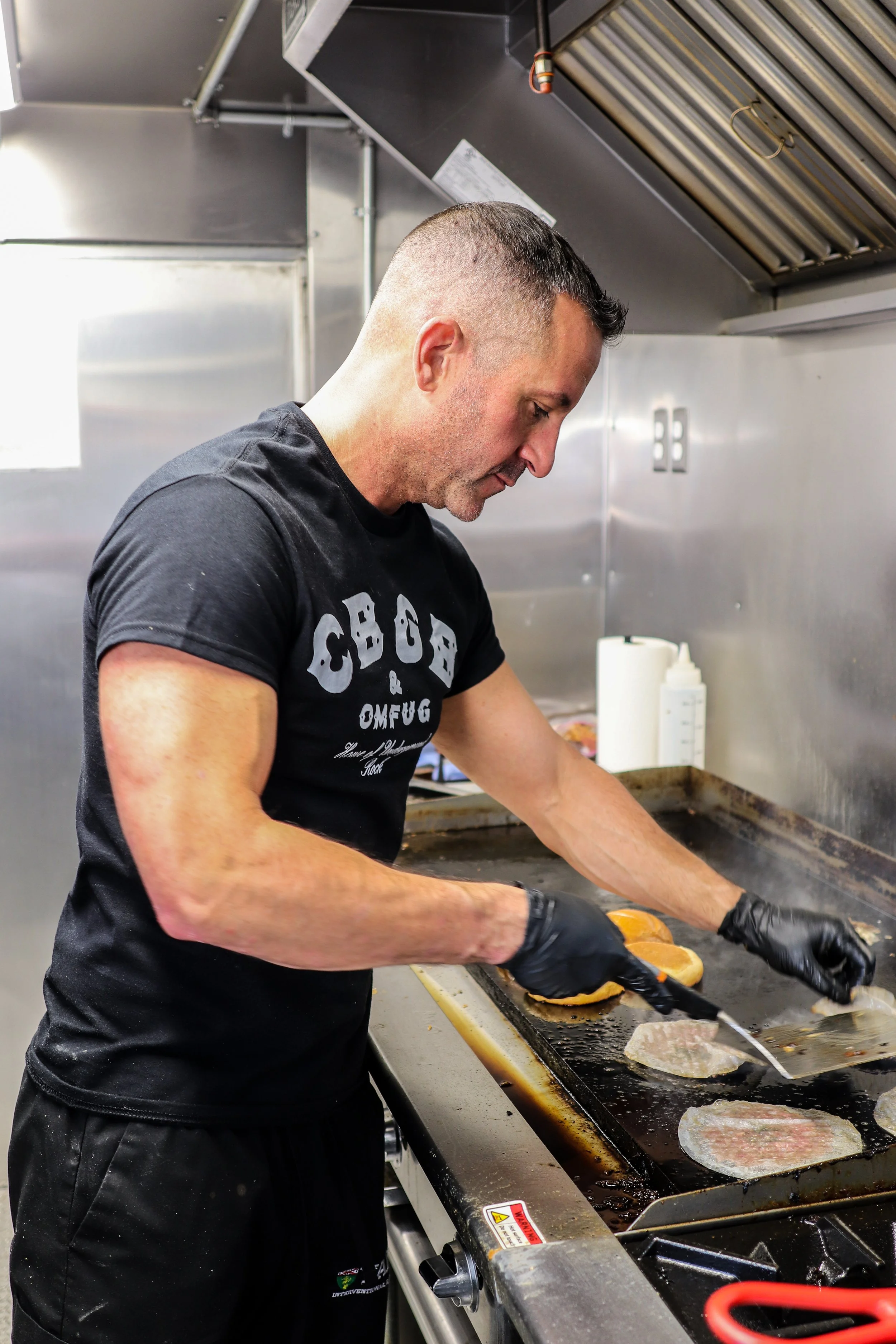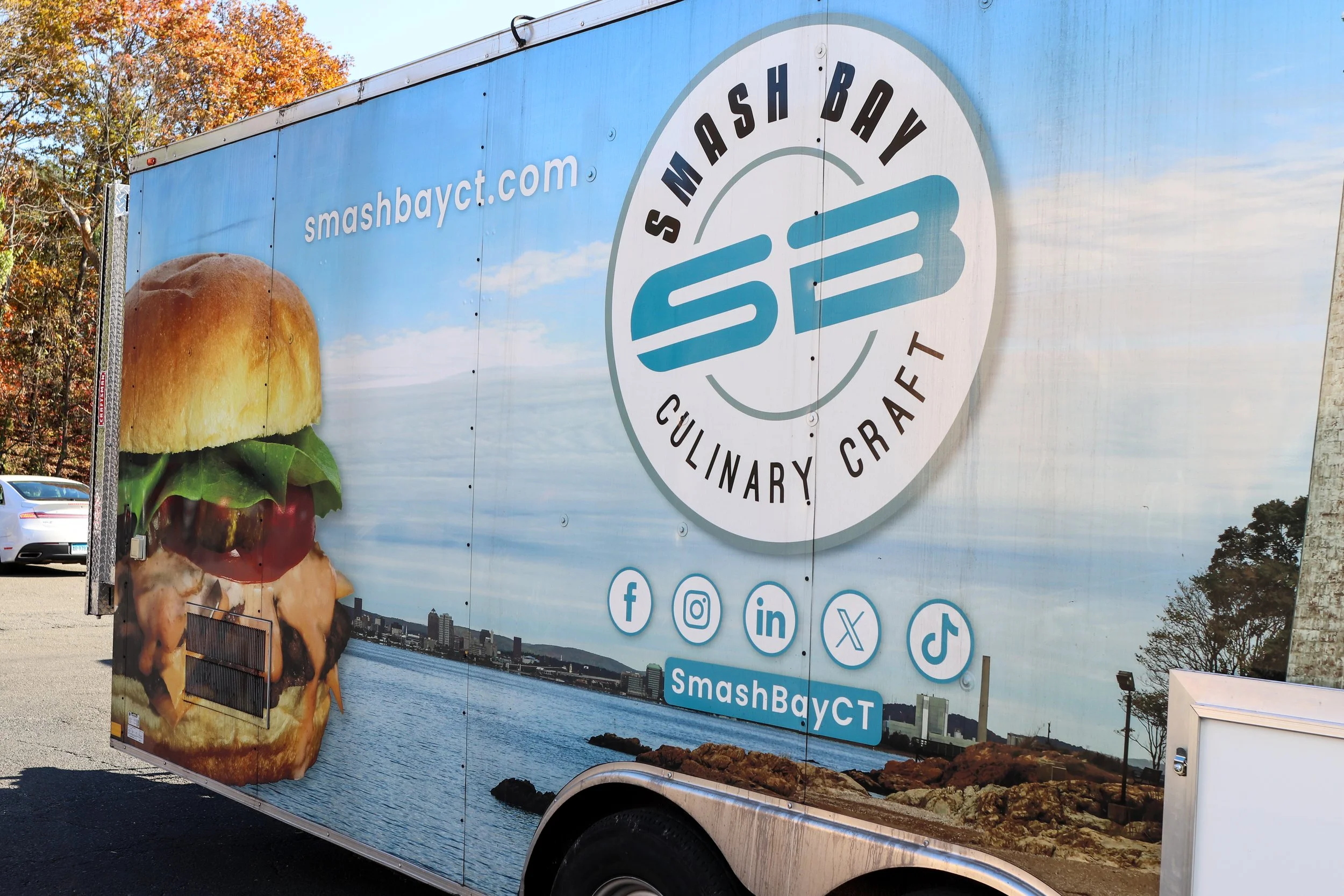 Features Ingredients Interview Smash Burgers Burgers Homepage Interview Food Truck Smash Bay Burgers: A CT "Must Eat" Burger Andrew Dominick November 14, 2025 Bussing tables, washing dishes, prep work, and something like flipping burgers are most people’s foot-in-the-door in the hospitality industry. Austen Bass isn’t most people. In fact, he did it backwards. After a long career in the technology field, and with no restaurant experience, you’ll now find him smashing, flipping, and assembling burgers inside of his Smash Bay food trailer, typically parked at a Connecticut brewery near you. “I don’t have a background in food; I’m a computer nerd,” Bass says. “I have a computer science degree and way, way back, had a successful career in web design working for Levi’s, Dockers, Flash Games, and South Park when I worked on southparkstudios.com. It was about a 20-year career. Then, in 2016, I founded a financial planning company called Facet Wealth that I started with five guys. We had no money, no funding, and I worked for free for about a year until we got an angel round in funding, then another round, and it ended up being over $200 million in funding.”In 2019, Bass was done with Facet Wealth, saying that it was tough to commute to Baltimore (where the company was based), in addition to having a family, including a daughter who’s a “super athlete.” “I was a hockey coach and on the board of directors for my daughter’s hockey organization,” he says. “It was rough flying there weekly. I was managing 10 people because I’m director of technology. I talked to the CEO and said I was burnt out and couldn’t take it anymore. He said, no problem and I bowed out, came home, and was doing consulting work, but since I did the company, my consulting work kinda dried up. I never intended on doing anything with food. I’m talking to my wife and I had no clue what I was gonna do. I’m not gonna do nothing. “I’m not formally trained, never went to culinary school, but I was always that guy that cooked. Coming from a single mom, she taught me how to cook since I was like six and I always loved it.” Bass uses presses that are more like plates you’d find at your local gym. Each one weighs three pounds. Instead of mashing his patties into the griddle, he give each a light press and lets the weight handle the rest. The result is a deep brown sear and caramelization. Bass says he can tell when it’s time to flip his burgers over when he lifts up a press and the beef’s edges begin to curl. After the flip, cheese goes on and they only cook about another minute or so before he starts to assemble your burger. Always a passion, Bass said if you had a party, he was always down to cook, no matter how many people were there. Grilling, coming up with recipes, making sauces, you name it he was into it. Something that became his cookout standard, though, were his smash burgers, that always received high marks. They loved it and his friends and family told him he should start his own burger business.While food trucks aren’t uncommon, one thing Bass saw was a hole in the market for not just a food truck, but one that was all about quality. Feeling like he could compete, he started testing his burgers out more and more on his inner circle, wanting brutally honest feedback. With a little experimenting done, his next step was to get more serious about it. “I did research on trucks and trailers and bought this one in Virginia,” he says. “They delivered it up here and all of a sudden, I had a big food truck sitting in my driveway, so I guess this is gonna happen. I really had to learn how to use it. It was a trainwreck to start. The soft opening after I joined the Cheshire Chamber of Commerce was cooking in their parking lot for them, like 30 people. I had problems with the grill; burgers were sticking to the press. I ended up shutting it down. The president of the chamber was like, ‘You’re gonna refund all these people.’ It was so frustrating. I’m thinking, what did I get myself into? I blew it. I can’t do this. Lots of self-doubt and second guessing myself. I sat there miserable thinking I made the biggest mistake and wasted $60,000 on this truck.”Bass’ misery was short lived. Instead of being down in the dumps, he felt the best way to get over it was to do something from his web design past and he wrote up a postmortem of what went well, what went wrong, and “how I’m gonna freakin’ fix it.”In addition to his postmortem, Bass consulted with a few close friends in the industry that he said were extremely helpful, Dino Maniatis, who owns Hornet’s Nest Deli in Branford, and Viron Rondos, owner and chef of Viron Rondo Osteria in Cheshire. “I worked at making it better and more efficient,” Bass explains. “Instead of doing one burger at a time, it’s two, then four, now six. Getting the oil temperature for the fries right. I chipped away at doing things the right way and learned. By almost the end of year one, I gained more confidence and knew I could do this. I started to get a little bit of a loyal following, then by the end of year two, people are really starting to show up for my food. We were in a Connecticut Magazine food truck feature, a full page, and (my burger) was the cover photo, and that got us hired more. Now we’ve got some swagger and clout behind our name. People are starting to come to breweries for me and the brewery owners started to realize that. It’s a tough journey, but the advice I’d give? If you wanna do this, especially if you’re not formally trained, stick with it. It’s fine to be down and second guess yourself, but pick your ass up off the ground and figure it out. If you do that, you can do it.”What was also part of Bass’ burger learning process were experimenting with different brioche buns (currently he uses Hartford Baking Co.) and settling on a ground beef blend with a high fat content from North Haven